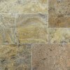 Travertinová dlažba s kartáčovaným povrchem, nepravidelné, dlabané hrany.